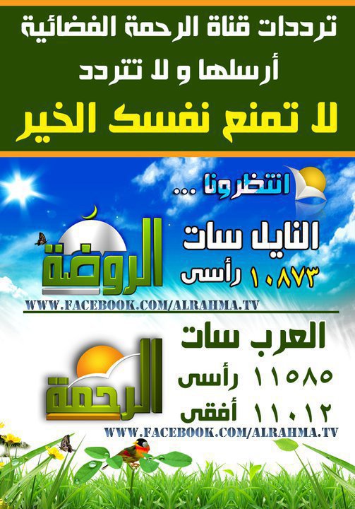 بشرى قناه الرحمة على العرب سات والروضه على النايل سات