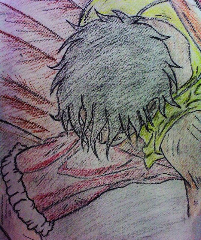و بالنسبة للألوان فهي oil pastels .. أحاول أن أتقن التلوين بها .. فكانت هذه الرسمة مناسبة كبداية لأن بها مساحات واسعة كما أنها أنيمي فألوانها بسيطة ..