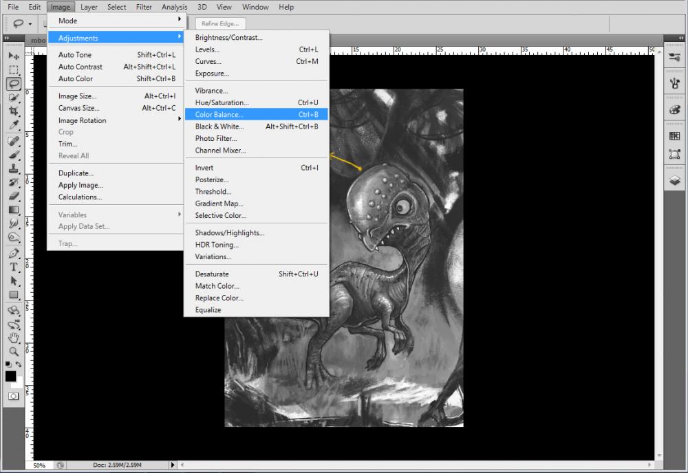 بعد اكمال الاضاءة، احول الصورة الرمادية الى اللون الاخضر بستعمال :