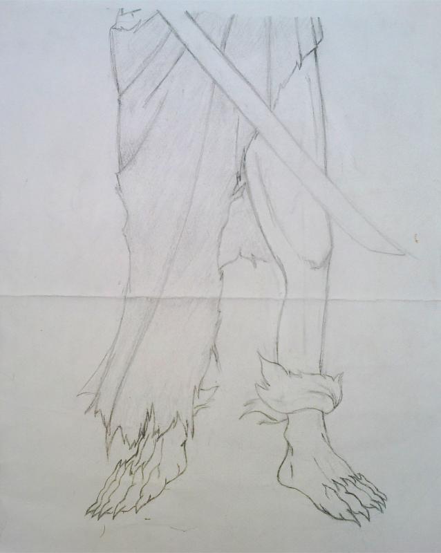 التحبير .. لم يعجبني الشكل العام للرسمة فحاولت تعديلها أثناء التحبير .. فعدلت في الشعر و الثوب و السيف كما أكملت رسم القرنين