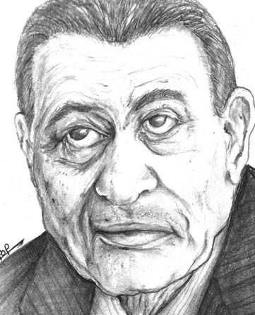 هذه رسمة بمناسبة نجاح الثورة كنت رسمتها في ايام الثورة .. لحسني مبارك ايام ما كان هو مستهزء بالشعب وبالقائه الخطابات الامبالية .. وحاولت رسم الملامحة اللامبالة واستهتاره بالشعب ..