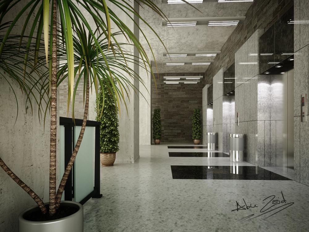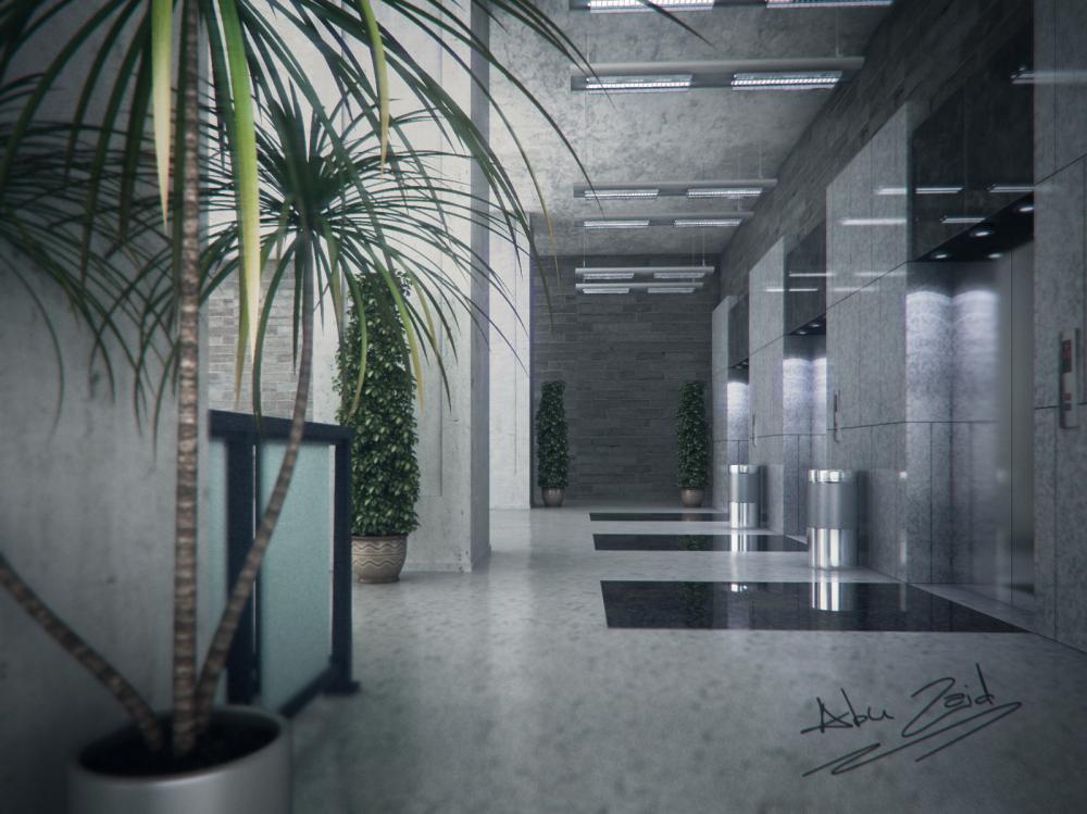 شيئ اخر وهو باب اول مصعد على يمين الصوره .. الباب احس ان لا يفصله شيئ عن رخام المدخل فاعتقد ان تضع اكلوجن اكبر على تلك المنطقه لتخلق حد فاصل بين الطبقتين وتقلل الانعكاس ..