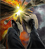 بس اعتقد ان الكتل الصغيره تسبق في الانفجار الكتل الكبيره فلابد ان توجد كتل صغيره فوق الكتله اللتي يقف عليها الشخص في الانفجار