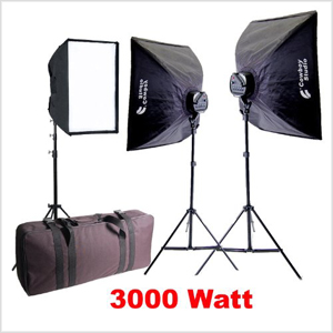 هنا صورة طقم إضاءة مستمرة -للفيديو - سوفت بوكس 3000واط سعره223 دولار بدون شحن وهو مناسب جدا لكاميرات الديسلر وانا شخصيا مجربه مع كانون550دي