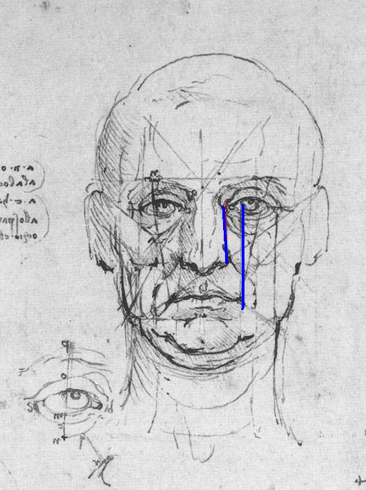 طريقة المستويات=متلا وجدت ان نهاية العين في نفس المستوى العمودي مع طرف الانف