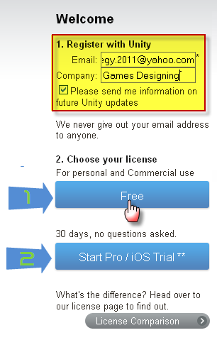 في الصورة السابقة الخيار الاول استعمل اليونتي مجانا مدى الحياة على الا تستخدمه في الاستعمال التجاري