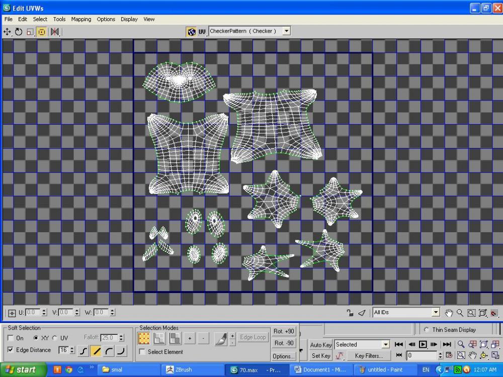 ثم قمت بفرد اليوفي الخاص به بواسطة تقنية pelt الموجودة في موديفاير الـ unwrap uvw