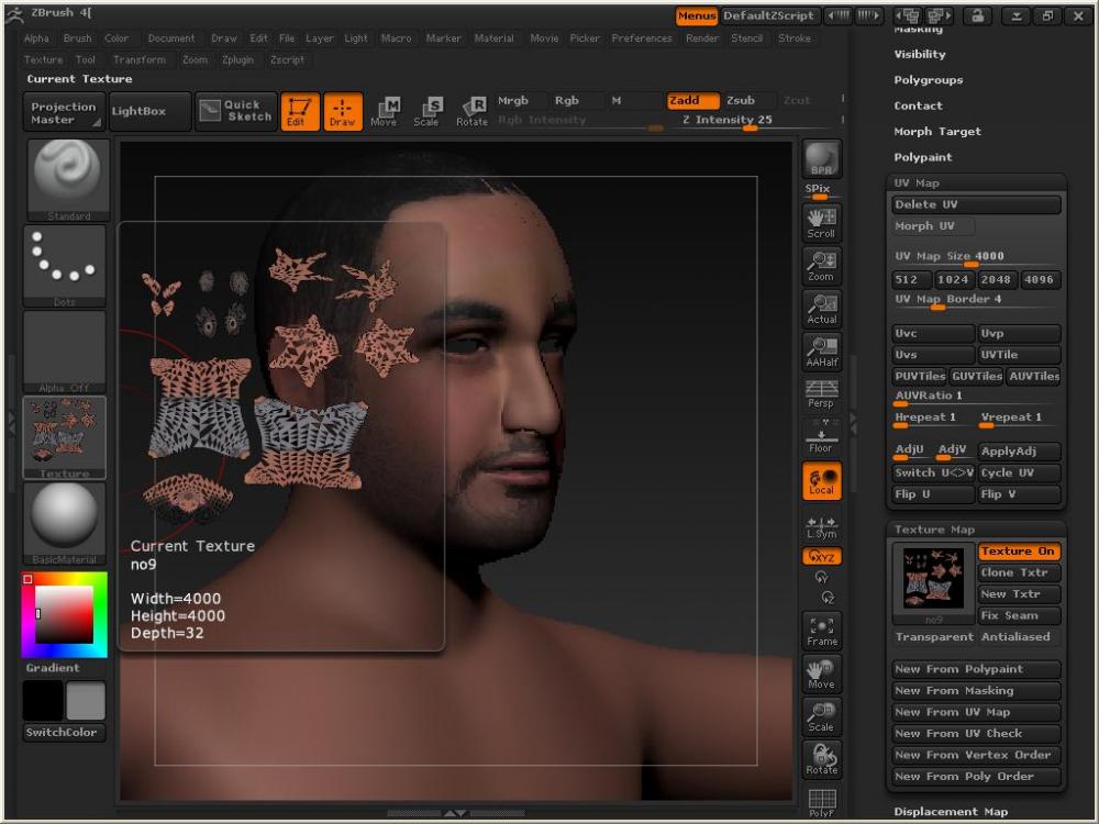 ثم دخلت على قائمة texture map ونقرت زر new from poly paint