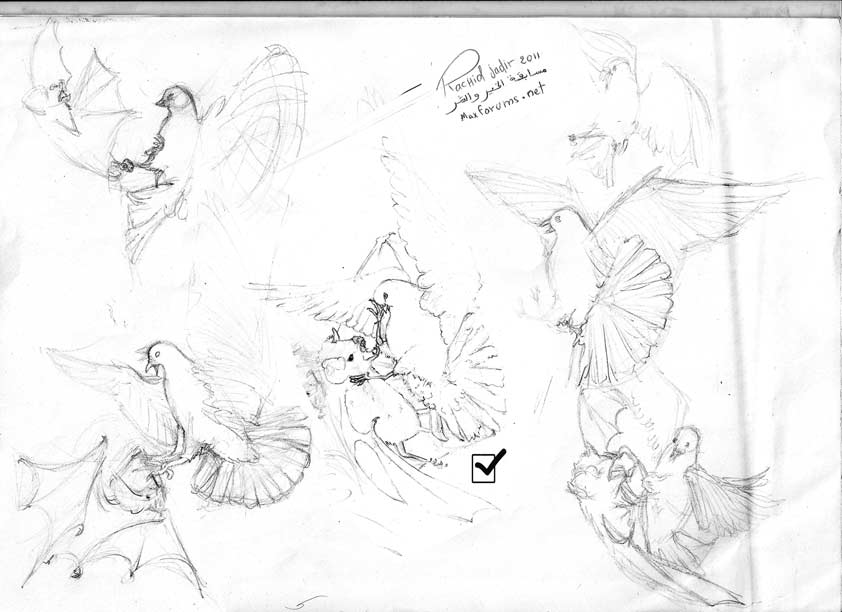 وكخطوة أولى لإنجاز العمل قمت بإنجاز عدة رسومات لدراسة وفهم تركيبة هذه الطيور.