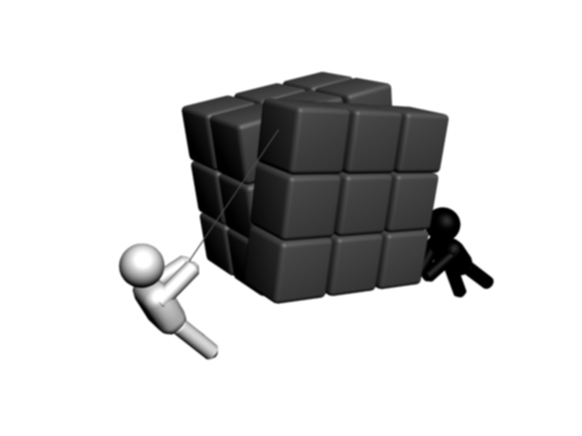 السلام عليكم مشكور كل من ساهم وشارك في وضع هذه المسابقة الجميلة ويسعدني المشاركة بها بعمل بعنوان (أبيض و أسود)والفكرة عبارة عن مكعب روبيك الشهير Rubik's Cube ومحاولة التحكم به عن طريق عنصري الخير والشر لتغيير حالة معينة لشكله كأن يغير ألوانه الى الابيض أو الاسود أو وضع خارطة العالم عليه ومحاولة تشويهها من قبل عنصر الشر (لم أستقر على فكرة لحد الآن للصور التي توضع على المكعب )ومرفق صورة لرموز أولية بالثري دي ماكس للعمل بعدها سأقوم بعملها بصورة أدق وبعض الإضافات الأخرى مثلا وجود عناصر تراقب الصراع بألوان سوداء أو بيضاء أو لون رمادي يمثل النفس البشرية الخالصة بالنسبة للشر(الأسود) أو الخير(الأبيض) أو الحالة الوسطية(الرمادية) التي تحتوي الصفتين أرجو التعليق على الفكرة والعمل لكي أستطيع البدء بشكل فعلي في التفاصيل ولكم جزيل الشكر
