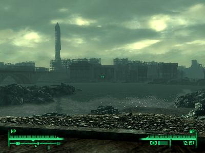 فمثلاً هذا المبنى الطويل الذي في الخلفية, هو ليس في الحقيقة مبنى في الخلفية , فأنت يمكنك أن تذهب إليه بعد أن تعبر هذه المياه وتمشي بين هذا الحطام وتشاهده كيف يقترب منك لتصل إليه ويمكنك أن تصعد إليه وتتفرج على الحطام من الأعلى, هذا الأمر يجعلك على ارتباط كبير ببيئة اللعبة التي تشعرك بأنها بيئة حقيقية وليست بيئة لعبة