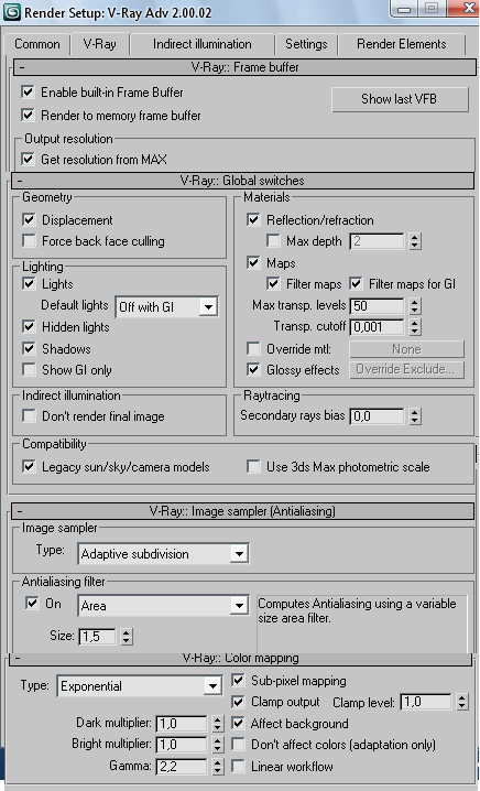 إعدادات الريندر مشهورة ودروسها كثيرة ، فقد فعل الإضاءة الثانوية وقم ببقية الإعدادت المعهودة.