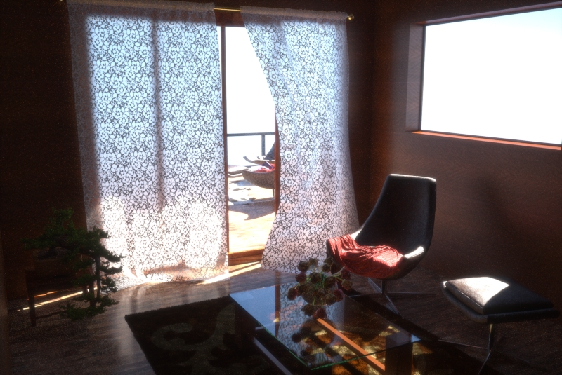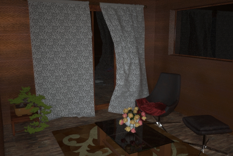 - وضعت باب مفتوح بعد تعديلات في بلندر و لذلك يبدو الستار متحركا بفعل الهواء لاعطاء واقعية اكبر