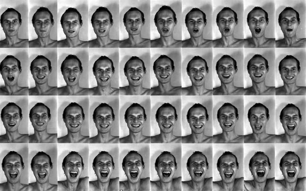 الضحك هو تعبير الذي يرسمه الفنان بكثرة ويستخدمه في فنه الدعائي ولو انتبهنا الى حركه العضلات في وجهنا ومايحدث عند الضحك فاننا سنلاحظ تقلصات في عضلتي الوجه ... عضله الوجنه والعضلة الضاحكة وبسبب هذه التقلصات تظهر في جانبي الفم ثنايا تعبر عن الضحك وزيادة على ذلك فان هذه التقلصات تنفخ الخدين وتشد الجلد وتجعلة ناعما وتظهر تجاعيد تحت العينين ...قوم بستعارة مرآه ودقق على ذلك ..ودرس جيدا