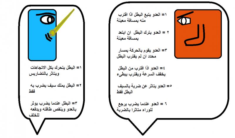 التجربة عبارة عن بطل وعدو يتقاتلان