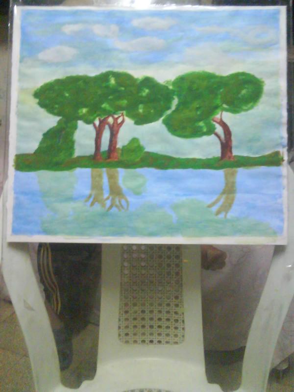 اريد ان اقدم لكم اول رسمة لي بالالوان المائية و ارجو ان تقولو لي ما الاخطاء التي بها و كيف اعلجها او اتجنبها المرة القادمة و ما الاشياء التي تفتقدها لوحتي و كيف ابلي بالنسبة لاول مرة