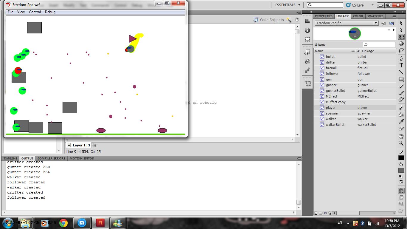 اللعبة كانت عبارة عن لعبة شوتينج, تتحكم بروبوت بالأسهم وتوجه الطلقات بالماوس, وأظن أن فيزيائية التحكم مسلية, لكن للأسف كما ذكرت الأخطاء البرمجية جعلت اللعبة ناقصة وغير قابلة للعب بشكل فعال, ومع ذلك أتمنى أن تعطوني انتقاداتكم على اللعبة