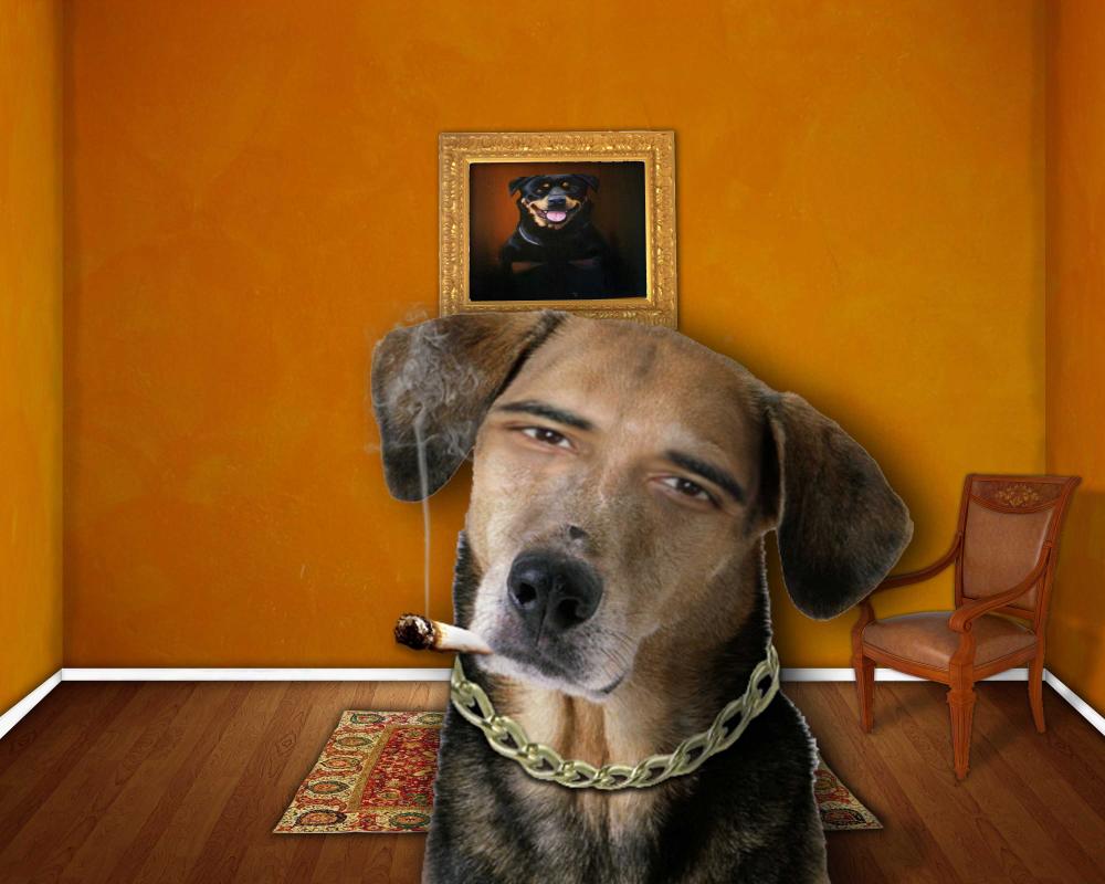 العمل فى النصف السفلى من الوجه يبدو اضافة وليس دمجا ...اعتقد انه كان يجب رفع انف وفم الكلب الى اعلى لتكون فى مكان الانف الآخر بحيث يكون فى الوجه انف واحد
