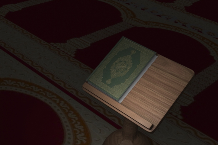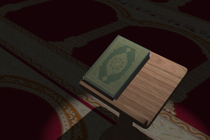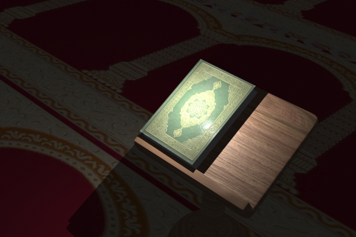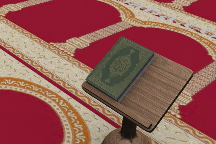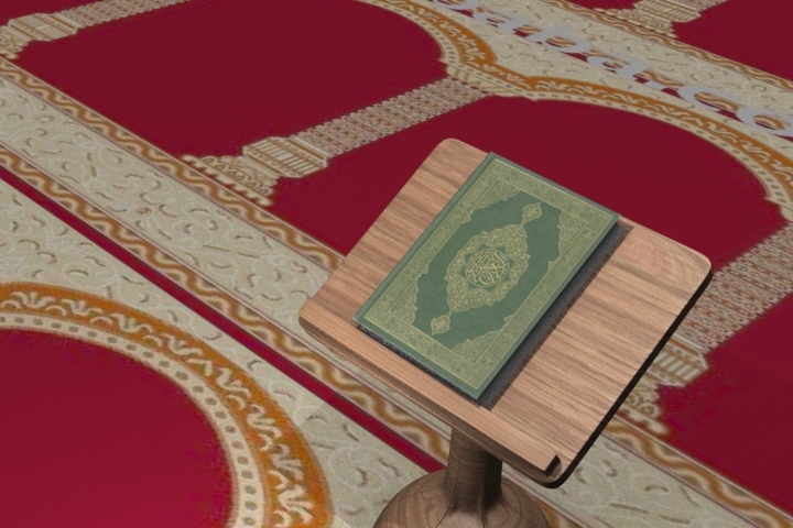 هذا أحد أعمالي بالمودو وهو عبارة عن نمذجة وإكساء لمصحف وحامل له في المسجد