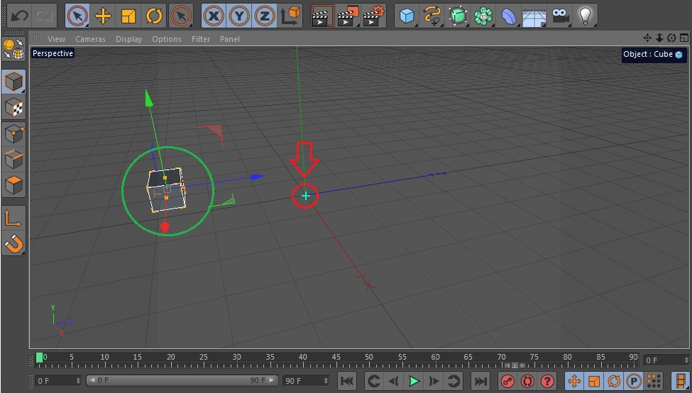 وهاذه صوره ربما توضح الامر لاحظوا الاكس المشار اليه بالسهم الاحمر ولاحظوا اني قد وضعت مجسم مربع لاكني لااستطيع ان ادور حول محوره كل مااستطيع فعله هو الدوان حول محور الاكس الابيض المشار اليه فقط