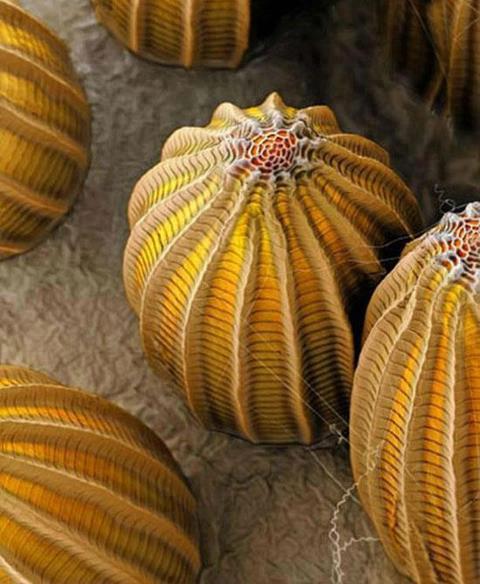 ماتشاهده في هذه الصورة هو بيض فراشة مكبر مئات المرات . .