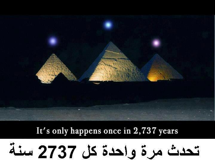 سبحاان الله ..ﺑﺘﺎﺭﻳﺦ 3/12/2012 تم ﺗﻨﺎﺳﻖ ﺛﻼﺙ ﻛﻮﺍﻛﺐ ﻫﻲ ﻋﻄﺎﺭﺩ ﻭ ﺍﻟﺰﻫﺮﺓ ﻭ ﺯﺣﻞ ﻓﻮﻕ ﺃﻫﺮﺍﻡ ﺍﻟﺠﻴﺰﺓ كما ﺗﻢ ﺗﻮﺿﻴﺤﻪ ﻓﻲ ﻫﺬﻩ ﺍﻟﺼﻮﺭﺓ ﺍﻟﺘﻘﺮﻳﺒﻴﺔ ، ﻭ ﻫﺬﺍ ﺍﻟﺤﺪﺙ ﻧﺎﺩﺭ ﺟﺪﺍ ﻭ ﻳﺤﺪﺙ ﻣﺮﺓ ﻛﻞ 2737 ﻋﺎﻣﺎ .