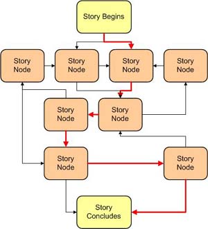 2-صعوبات قصصية : فإن كتابة ذلك النوع من القصص معقد بصورة لا يمكن تخيلها .. فتخيل صعوبة كتابة قصة تستطيع أن تتفاعل معها بأى شكل تريد .. تخيل كم الحوارات والسطور التى يجب كتابتها لكل قرار .. فقد تتفرع القصص الى عشرات الأجزاء بسبب بعض القرارات وتخيل صعوبة أن تحافظ عن اثارة الأحداث فى جميع الأجزاء وتخيل لا يوجد برامج مخصصة جيدا للمساعدة فى ذلك النوع من العلاقات ولذلك ستضطر أن تلجأ إلى العلاقات اليدوية .