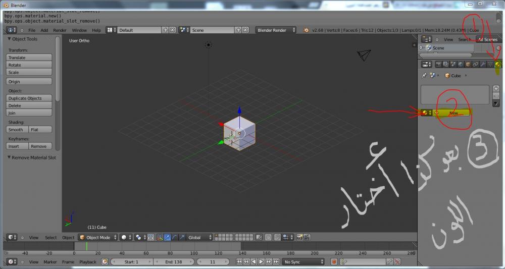 إن كنت تتقن الانجليزية ولو قليلاً, فأنصك بمشاهدة الدروس التي تشرح اساسيات البرنامج. (Blender basics)