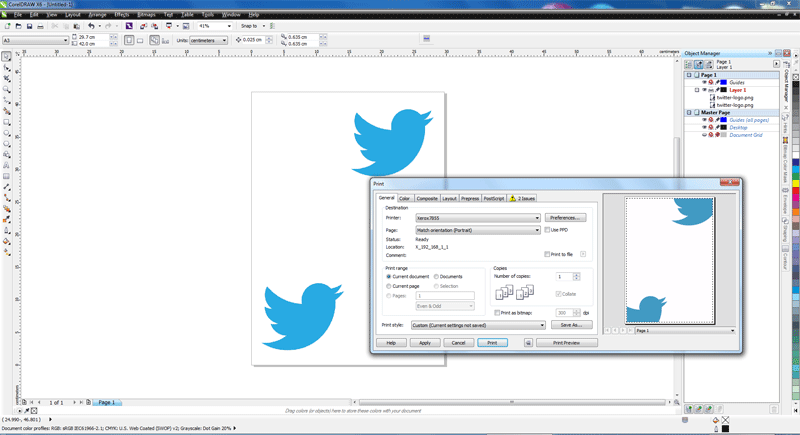 للضرورة القصوى .. كيف اجعل معاينة الطباعة في الكرويل ردو بمقاس a3