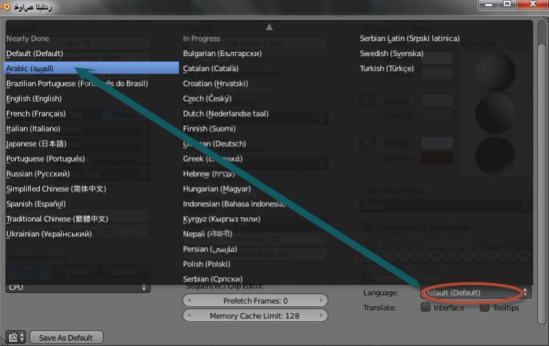 • تحويل blender للغة العربية