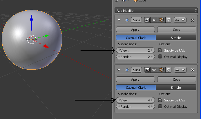 1- أدخل مكعب جديد و ضع له اثنين من surface Subdivision