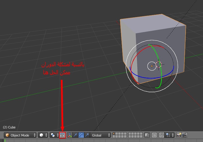 2 - إذا كنت تريد دوران المجسم حول المحور Y (اللون الأخضر) ... حدد المجسم واضغط R وبعد كدا Y وحرك المؤشر .