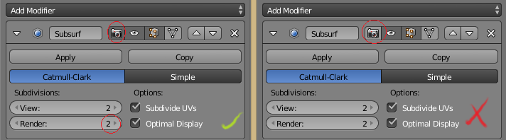 اما ان ايقونة الكميرا التي من فوق كما مبين في الكميرا غير مفعلة و بالتالي السبسرف مودفاير يظهر في الفيو و لكن في الرندر لا يظهر