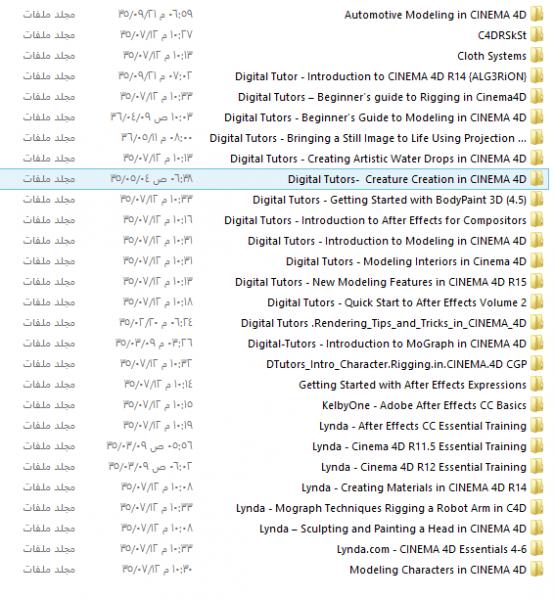 وهي دروس مرتبه ترتيب حسب التخصص من مودلينج واضاءه واخراج وانميشن الخ