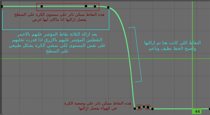 لكن المشكلة عندي في الجراف ايديتور أنا أواجه مشاكل فيه يعني تقريبآ أنا 80% من عملي في الدوب شيت يعني أنا عندما أشعر بخطأ بالأنيميشن أحاول تعديله عن طريق إضافة كي فرايم وتعديل وضعية الكرة
