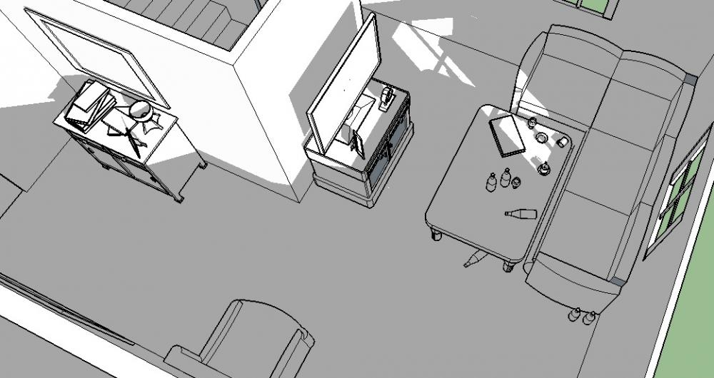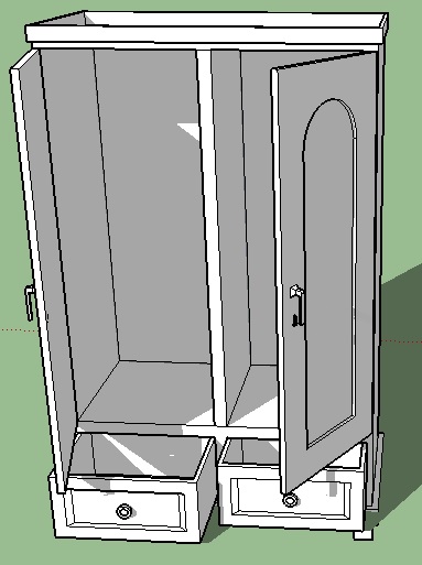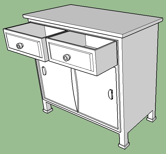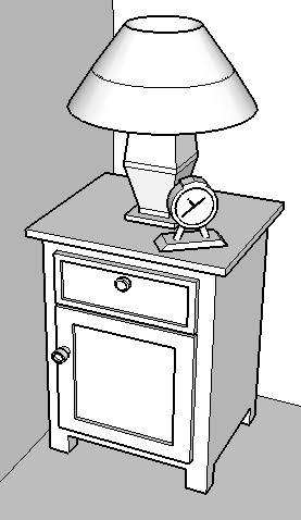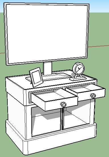 تم تصميم كل من الدرج و خزنة التلفاز والساعة واطار الصورة لوحده وبعدها دمجتمهم كما هو موضح في الصورة