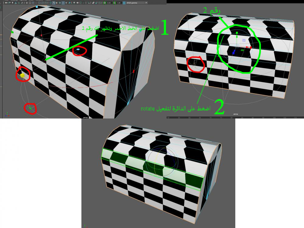 ثم بعد ذلك اضغط على حرف e لتفعيل ال rotate او ال move