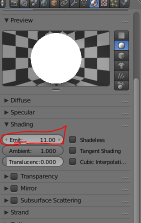 جربت بكل الخيارات ولم أصل لشيء سوى أن يضيء الجسم نفسه فقط ولكن الضوء لا ينعكس على الأجسام الأخرى فتبقى مظلمة\