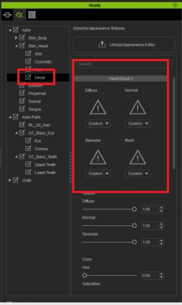 فهل يظهر عند أخي الخيار Decals لوضع الوشم على الجسم.