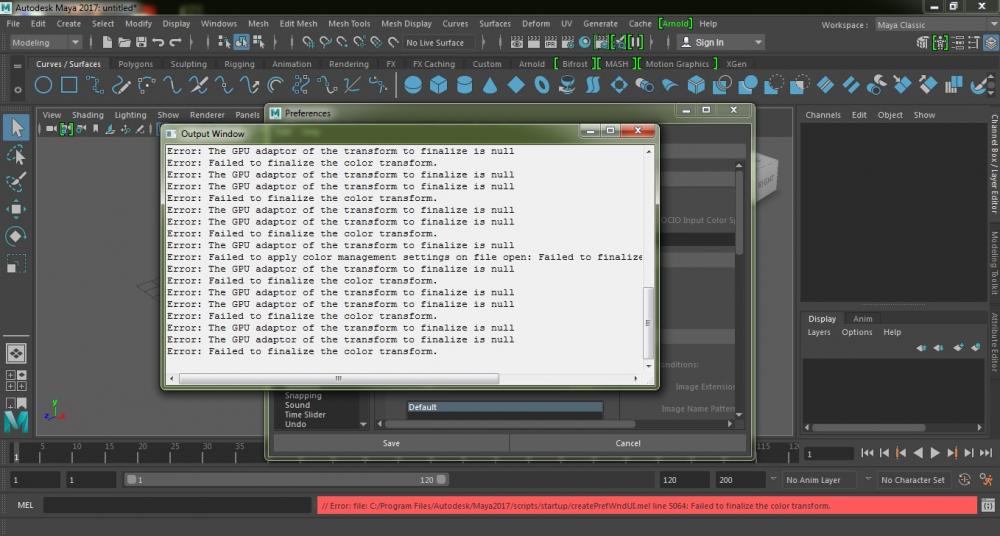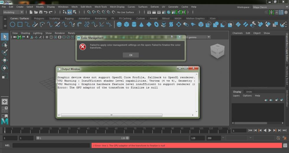 حيث تظهر رسالة: Error: line 1: Failed to apply color management settings on file open: Failed to finalize the color transform.